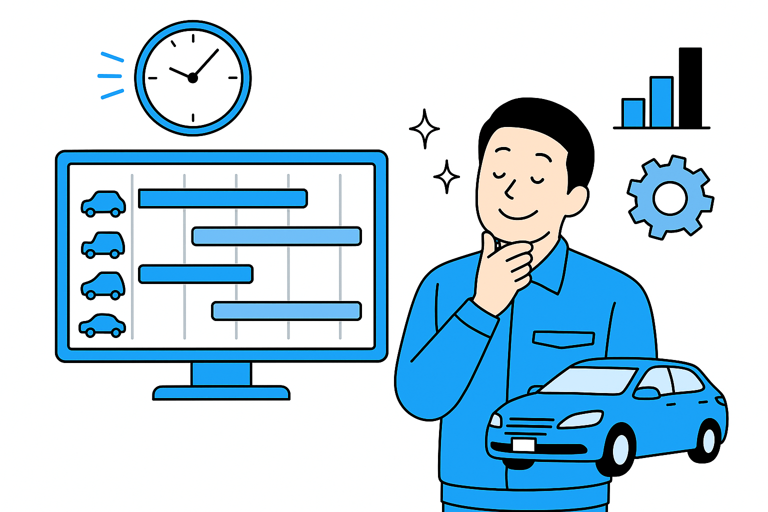 日中は、返却対応や洗車、送迎や急な予約対応でバタバタ。ようやく現場が落ち着くのは、毎晩20時すぎ。そこからやっと、「店長としての仕事」が始まります。