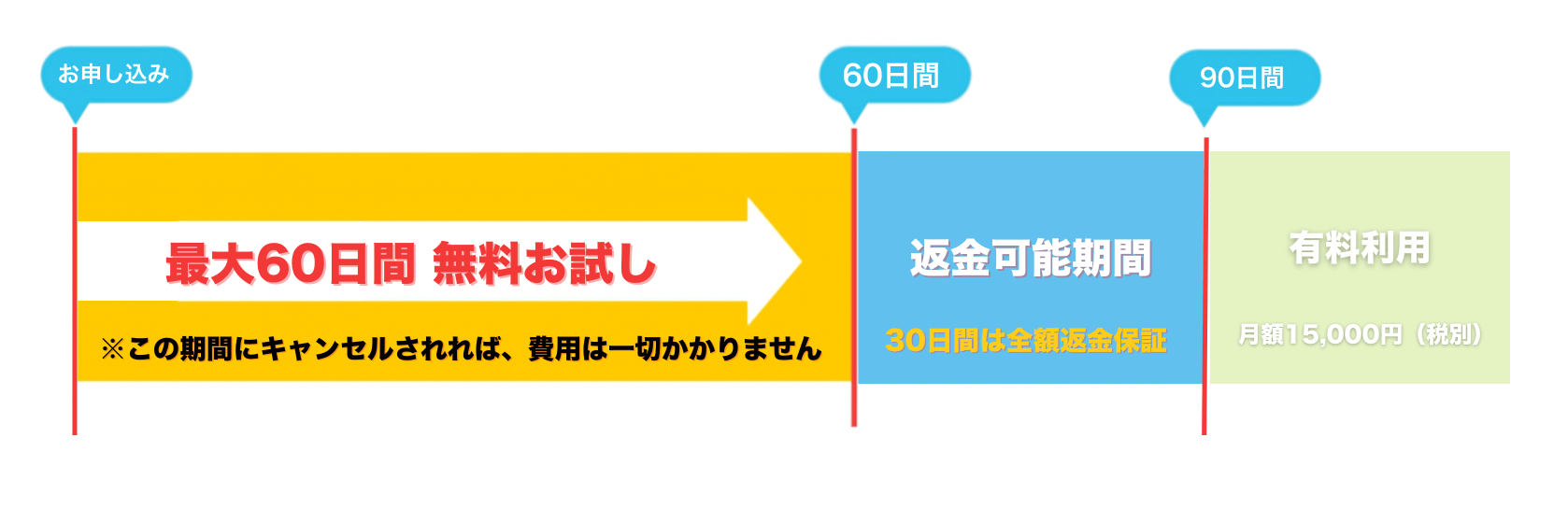 『最大60日間の無料』+『30日間の返金保証付き』