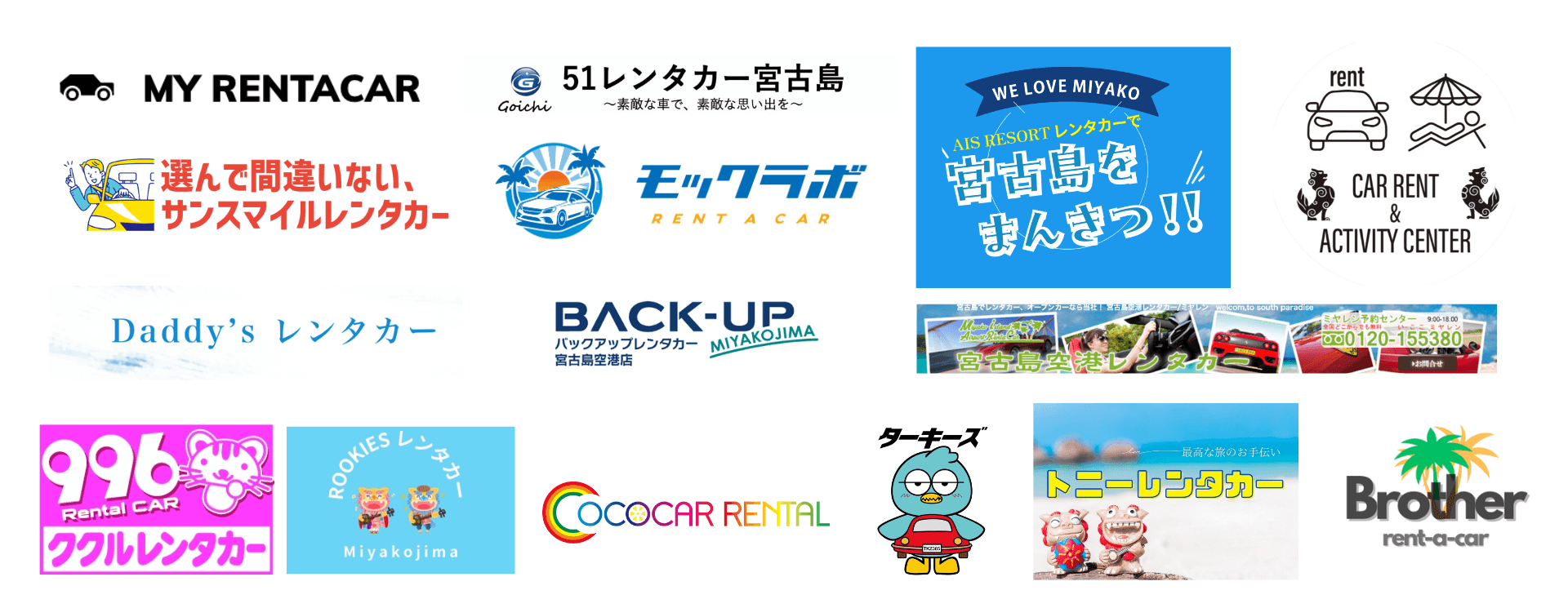 20社以上のレンタカー店舗が