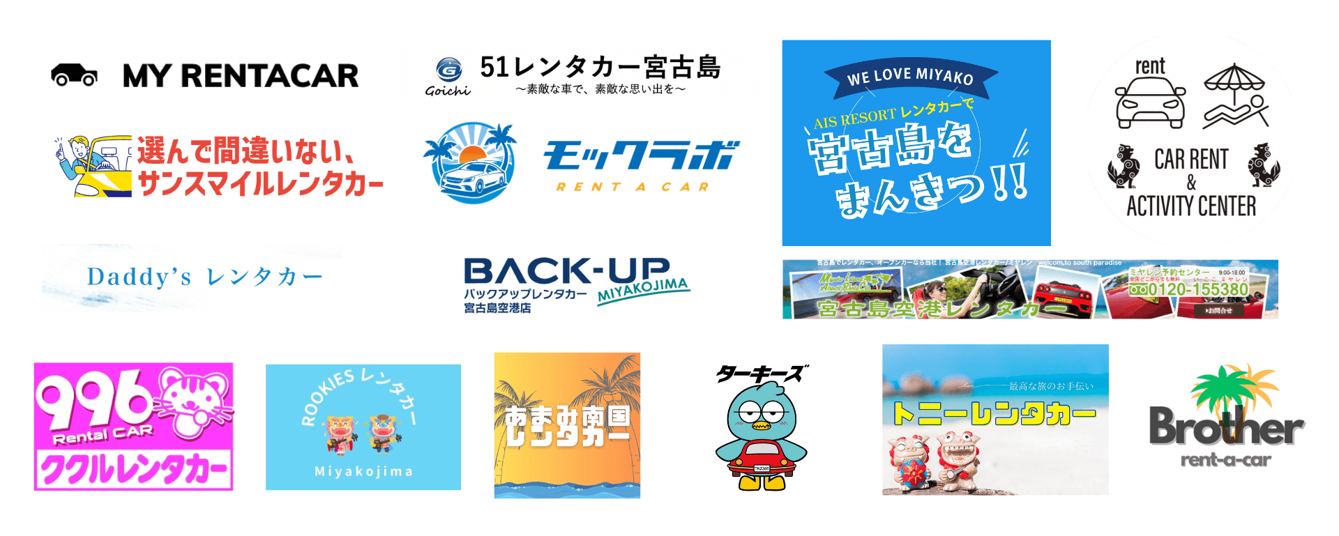 20社以上のレンタカー店舗が